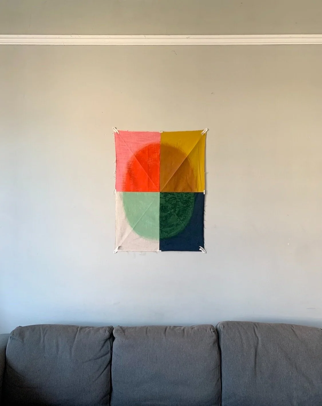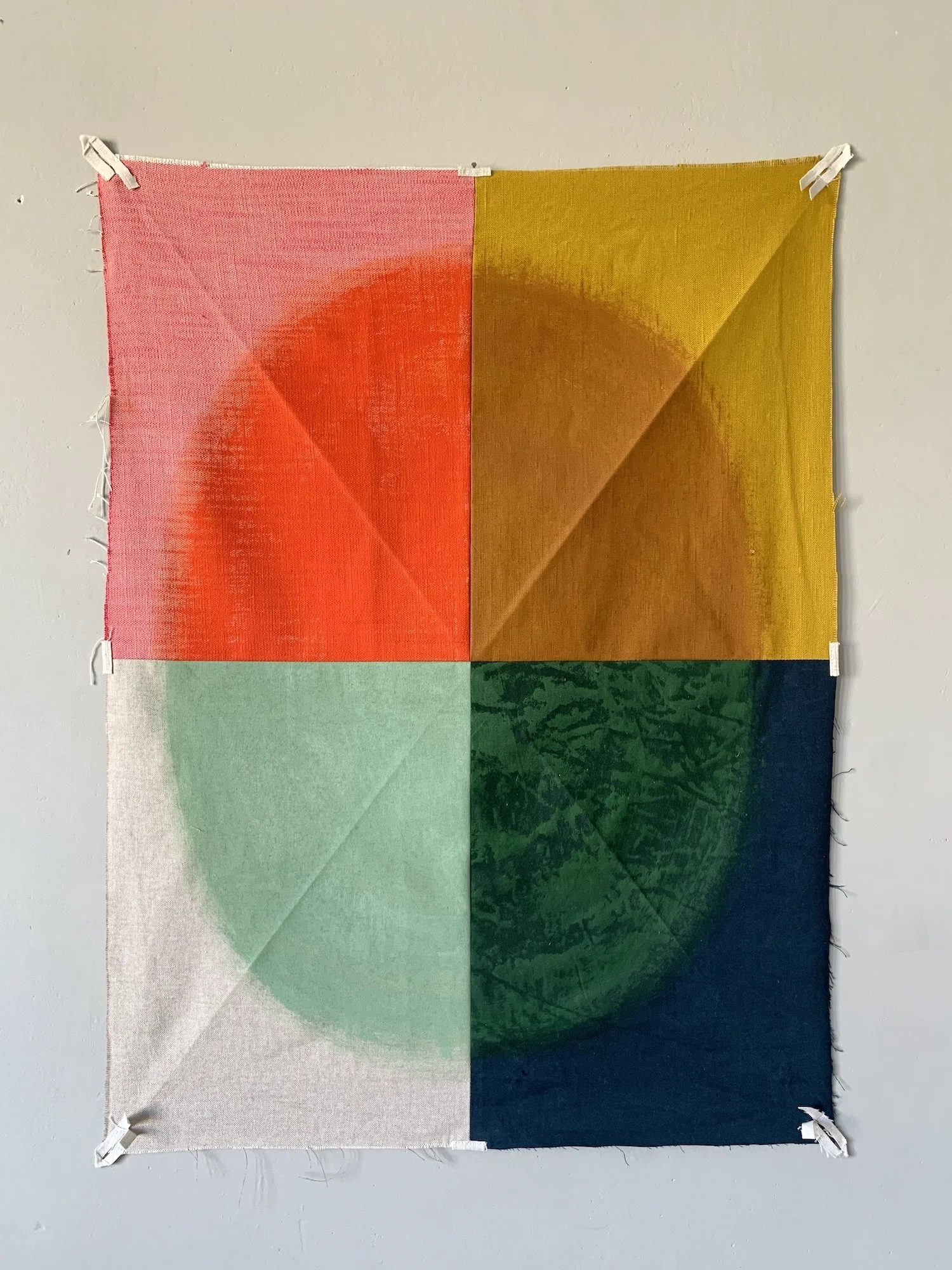 2023. Acrylic paint on different fabrics. cut and re-assembled.